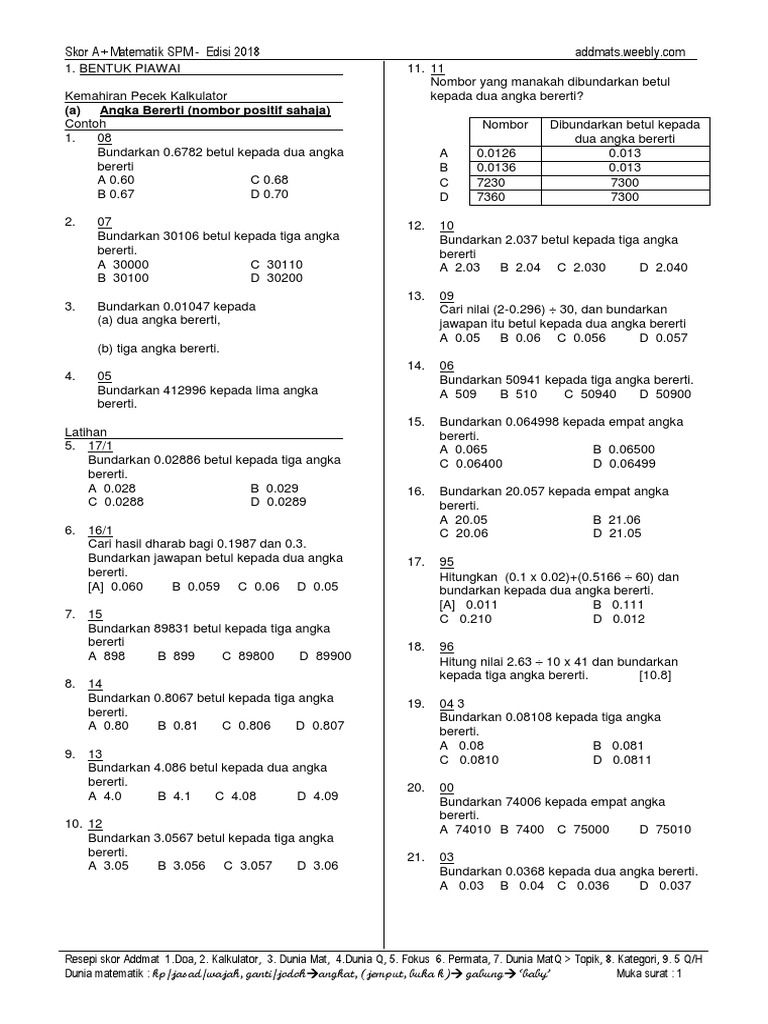 Bentuk Piawai Spm Kertas 1 Koleksi Bab 1 F4 Part 1